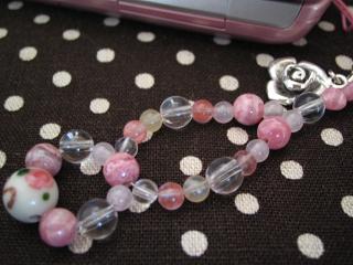 さっそく天然石のストラップを作りました。まず自分用にローズローズなストラップ♪とてもラブリーな仕上がりに満足してます。・インカローズ・ローズクォーツ・チェーリークォーツ・水晶・カーネリアン・バラのとんぼ玉・バラのチャームこちらはダンナさま用。仕事運や金運、健康運の石を使って。上についてるねこは”万事如意ねこ”。万事如意とは、すべて思い通りになるというような意味だそうです。・シトリン・水晶・アベンチュリン・グリーンメノウミニバラ「ヘナ」。通常ヘナはもっと黄色っぽいんですが、これはかなりオレンジですね。長い間つぼみの状態でやっと開きました。