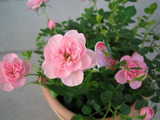 買ったときはつぼみだった『ダイヤモンドフェスティバル』。こんなキレイな花が咲きました。2cmくらいの小さな小さなバラです。新しく仲間入り。コルダナローズ『ニコル』。濃いローズピンクでコロンと咲いてます。こちらもNEW!ミニバラ『カプチーノ』。つぼみが何個かついてました。早く会いたいな・・・。こちらはミニではなく、チャイナローズ『ソフィーパーペチュアル』。新苗です。つぼみが2、3個ついてました。大好きなカップ咲きのバラなので、開花が楽しみです。ブルーダイヤモンド&エンブラゾン。だいぶ咲きそろってきました!