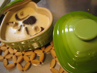 ミニバラ『カプチーノ』が咲きました~♪花びらが多くてなんて可愛いんでしょ。色はサーモンピンク?アプリコット?おいしそうな色です。↑カプチーノの開きかけ。この段階では普通のミニバラ。てんぷら粉ロールケーキ。混ぜが甘かったのか、ふくらみがイマイチ。でもふわふわなんだよねー。ルクでたけのこご飯。新物の茹でたけのこを使いました。そして、わが家のしいたけをたっぷり入れました。今日も美味しく出来ました。白い食器。ハートのスフレ、可愛いんです♪何に使おうかな?