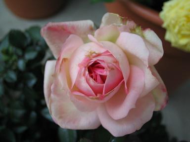 つるバラ『パフビューティー』。1番花は黄色っぽく咲いてます。ほんとはアプリコットなんだけど。いい香り~♪玄関脇の細い通路に地植えしてます。やっぱり地植えは元気がいいなー。かなり暴れてます。つぼみがいっぱいあるからこれからが楽しみ!ミニバラ『ヘナ』。いつも咲いてくれる優等生。でも、葉っぱが少なくてかわいそう。ペラゴニウム・エンジェルアイズ(ビオラ)。ベランダの隅でひっそりと咲いてました。あんまり元気じゃなくて、もうダメかなってお世話してませんでした。土がカチカチになっているので、植え替えてあげなくちゃね。ほったらかしてごめんね・・・。