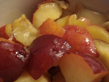 1週間ほど前に、100円で買ったプラム。まだ青々してたので常温に置いて赤くなるのを待ってました。6個のうち2個は真っ赤になって、あとの4個はほんのり赤くなったところで、ジャムにしました。種を取って、ざくざく切ってお鍋へ。今回もソースパンを使用。砂糖を入れずにしばらく煮て(レモン汁も加えました)、水分が出てきたところで砂糖を少しずつ加えていきました。ゆるゆるに仕上げました。小さめのビン、4個分できました。全部のプラムが真っ赤じゃなかったので、ピンクオレンジ色になりました。ほんとは赤いの作りたかったんだけどな・・・。知り合いの方から、紫蘇を頂きました♪無農薬なので、虫がいるかもと言われたので、水にしばらくつけました。そしたら、少し色が出てしまい所々緑色になってしまいました。紫蘇ジュースを作ることにしました。沸騰したお湯に紫蘇を入れて、2~3分。あっというまに紫色に。紫というより赤黒い感じ。砂糖を煮溶かして、冷めたところでクエン酸を投入。一瞬で綺麗な赤紫になりました!2Lの紫蘇ジュースが出来ました。お味はというと、・・・ちょっと苦手かも。以前、青じそで作ったときは大丈夫だったような気がするんだけど・・・。炭酸で割ると飲みやすいかもしれない。