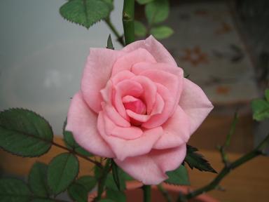 イングリッシュローズ・ウィズリー。大輪ということでしたが、この時期だからかすごく小さい花です。色もタグの写真よりかなり薄めです。枝も細く頼りない感じ。こう見ると、チャールズ君に似てるかな?レッドモンテローザ。綺麗な色で咲いてくれました。実際の色は、もっとローズです。