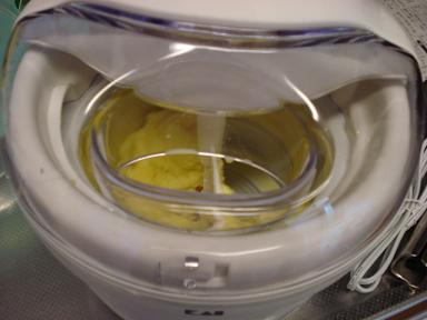 アイスクリームメーカーを買いました。前から欲しかったの~♪だってアイス大好きなんだもん。。。まずは、基本のバニラアイス。生クリームなしで作ってみました。材料は牛乳・卵黄・バニラビーンズ・砂糖。キャラメルチョコチップも入れてみましたが、なしのほうが良かったかも。(製菓用チョコだから固かった・・・)今度は、溶かしてから入れようっと。冷やした液を入れ、ぐるぐる・・・。20分ほどで完成です!生クリームなしなので、さっぱり。う~ん、おいしい♪次は生クリームで作ってみたい。マーブルパウンドケーキ。パウンドケーキというと、いつもはたっぷりのバターを使い砂糖としっかり混ぜる作り方でしたが、今回は卵白・卵黄を別立てしてから、最後に溶かしバターを加えるやり方で作ってみました。薄力粉100gに対してバターの量は30gと少なく、少しはヘルシーなか?と思います。ココアを混ぜてマーブルにしました。さっぱりして、何個でもイケそうです。これからはこのレシピでつくろうかな。。。チビなすが2つ生ってます。花も咲いているので、あと何個かは収獲できそう。ちびピーマンは5つくらい生ってます。