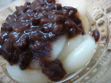 白玉あんこがけ。前にコストコで買った白玉粉、しかもBIGサイズ、奥のほうで眠ってました・・・。ちょうど冷凍庫に手作りあんこが残ってたので、少しゆるくしてから茹でた白玉にかけて食べました。白玉はすごくもちもちしておいしかった~♪今度は抹茶白玉でも作ろうかな。