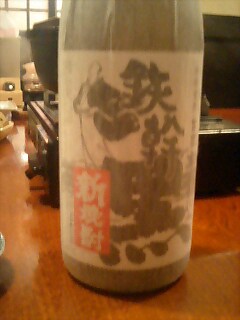 今日は休みなので、朝からパソコンとにらめっこ。昨日撮ってきた画像を取り込み、メニュー用に編集、メニューも配置などを細かくチェック、文字の大きさなんかもヨメに見てもらい直しながらほぼ完成あとは単価入れと、強いて言えば装飾系(オススメとか、★マークでつけるとか)を月曜に店長と相談して再度詰め直しすれば良いトコまでたどり着いたケド、個人的にただ芋焼酎が好きなだけでここまでやるワシって・・・暇人焼酎キチガイなどと、たまに思えてしまう。まったく興味のない人からみればそうみてるかも知れないし。確かに店長も、集めるのは「もはやオ●ニー状態」とまで言うほどでもせっかく仕入れたモノをちゃんとはムリにしても、メニュー見ればラインナップがイメージ出来るモノ、そして焼酎に力入れてる店長の気合いをお客さんに解って欲しかったので、へんなこだわりを発揮してしまい、なかなか前に進めなかった。まあ、そんな感じで一日過ごしてたものだから、今日の晩酌は誕生日に店長がプレゼントしてくれてた「鉄幹 黒 新焼酎」にしました新焼酎は利右衛門でハズレだったので、ちょっと勇気が要りましたが、呑んでみないコトには前にはそれこそ進まないワケで・・・でもやっぱり・・・少々若かったストレートとロックでいきましたがシャキッとしたところが見えて来ません、なんかボヤッ、モヤッとした印象。再度月曜に晩酌して見えてこなければしばらく寝て貰うことになるかもです。