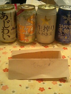 日曜日は家にいる間じゅうメンテで更新できず。でもって仕事&合唱の練習、でもってお友達呼んで自宅でご飯だったのでPCいじりも出来ず仕舞でした。・・・土曜日の夜。仕事から帰ると宅配の包みが置いてあるヨメは事情を知らないので、なにか買ったのみたいに思ってたらしく、てんっ♪さんのキリバンの賞品なんよコレと説明。画像はラベルを正面に向けてますがちゃんと見本品と書いてますこういう非売品好きなワシには心くすぐる賞品でした、てんっ♪さんありがとうございましたさっそく冷蔵庫に入れて冷やしてますからね~