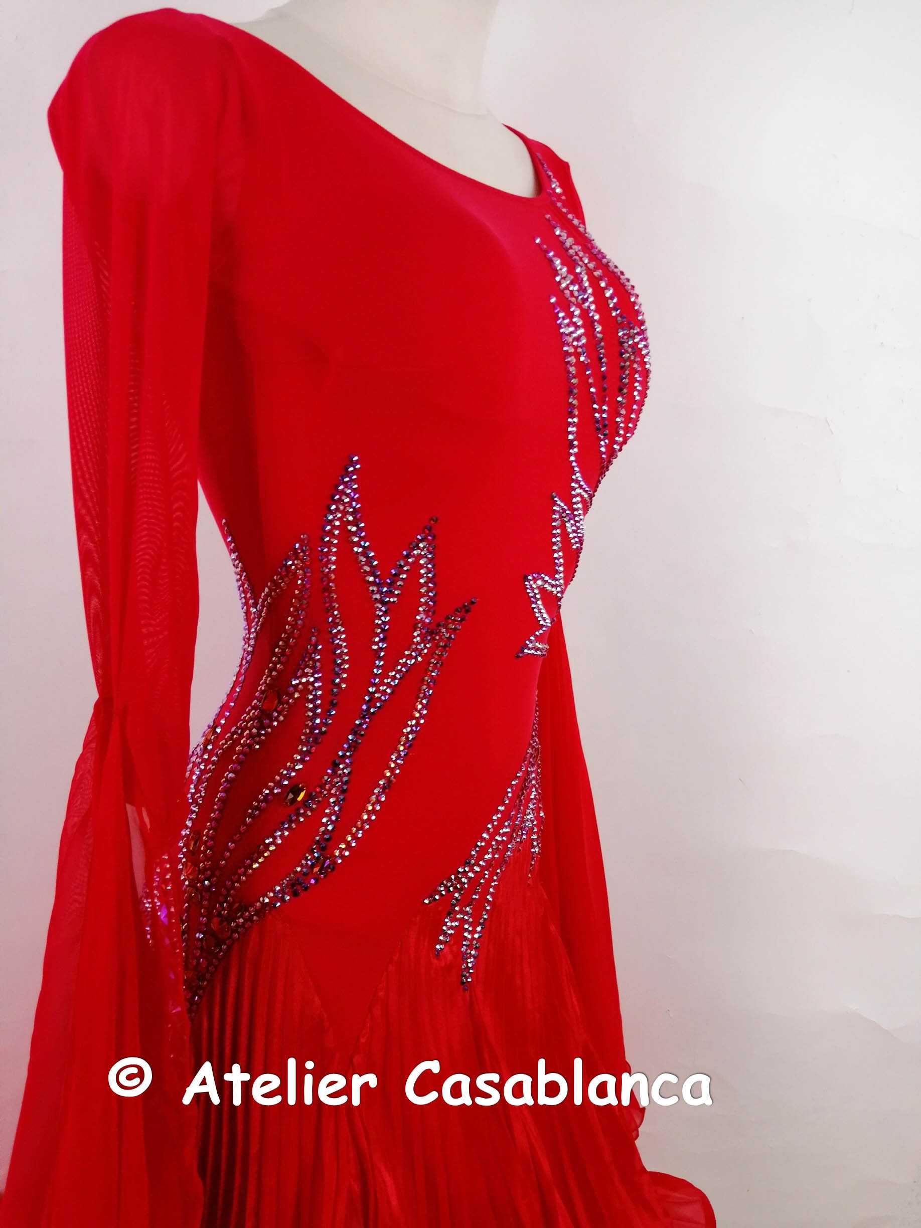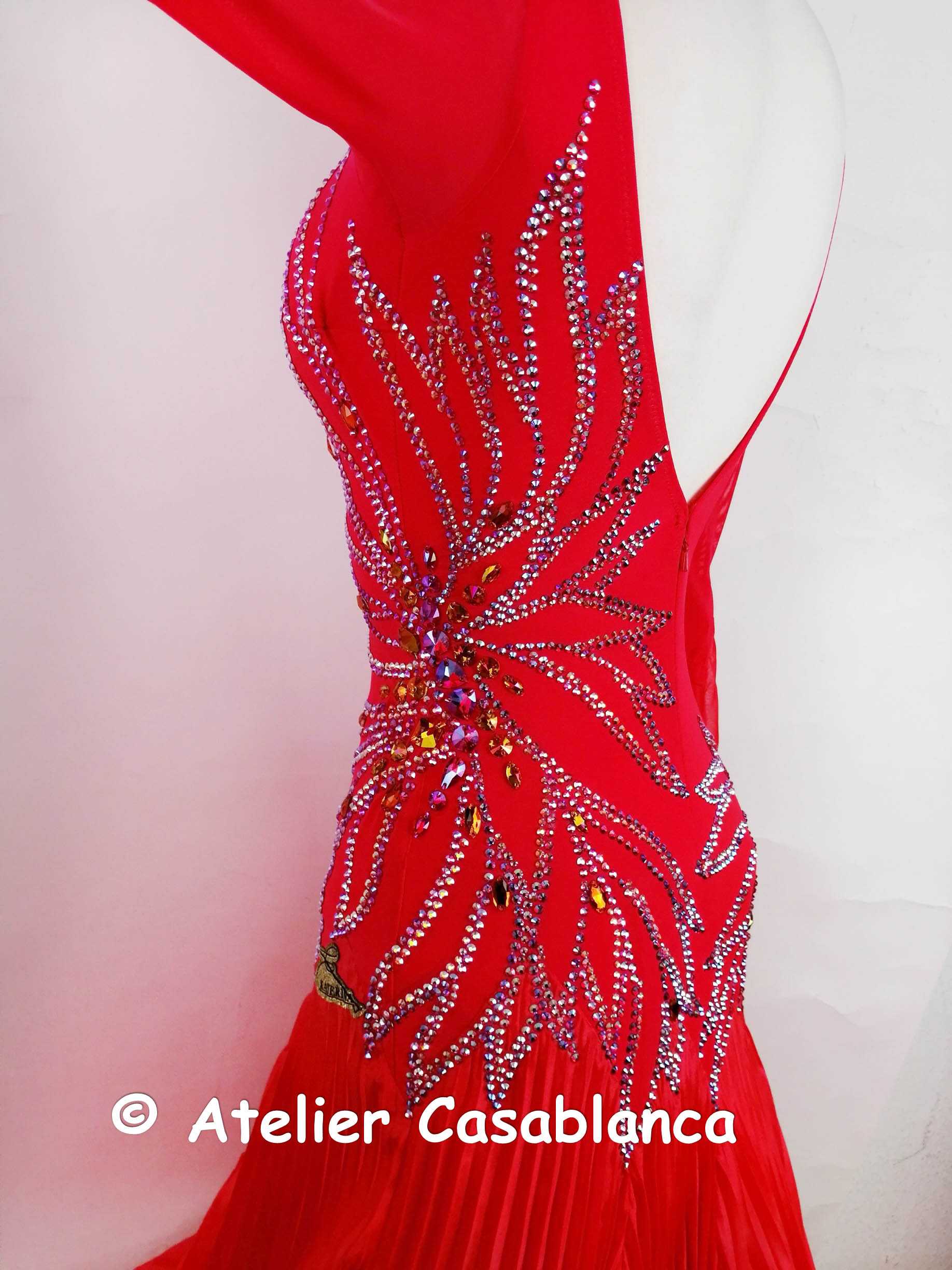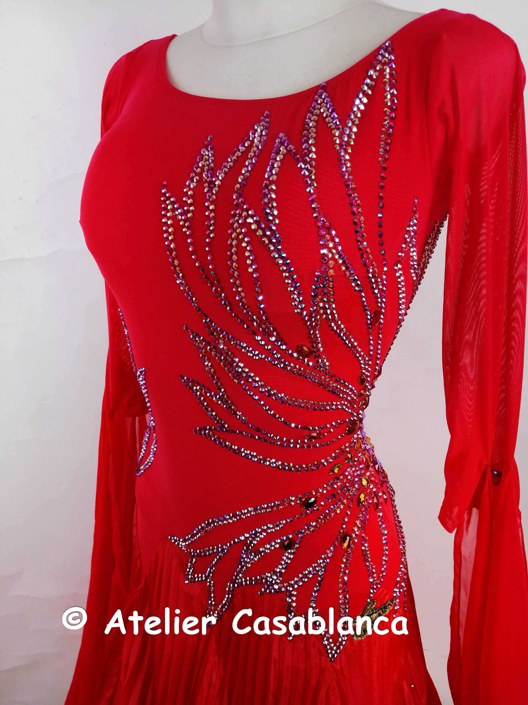 アトリエカサブランカで常に大人気の超素晴らしいウクライナのダンスドレスブランド、「カタリーナ」制作の未使用新品の赤の七分袖のスタンダードドレスです。
