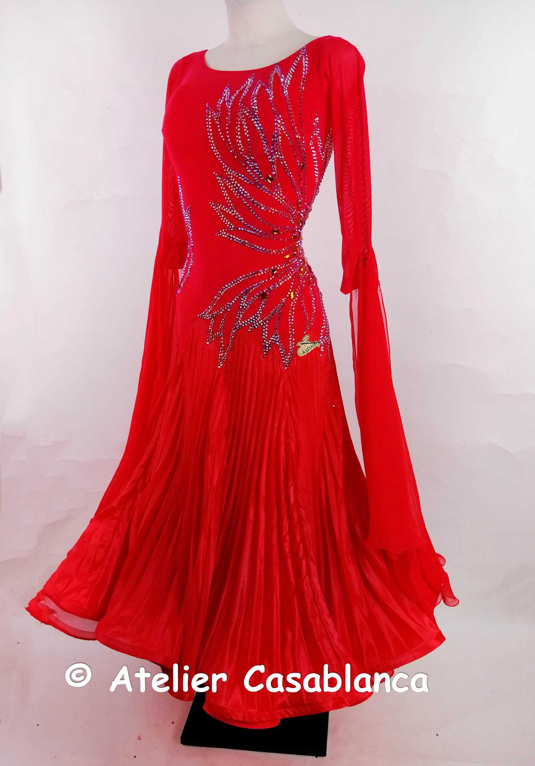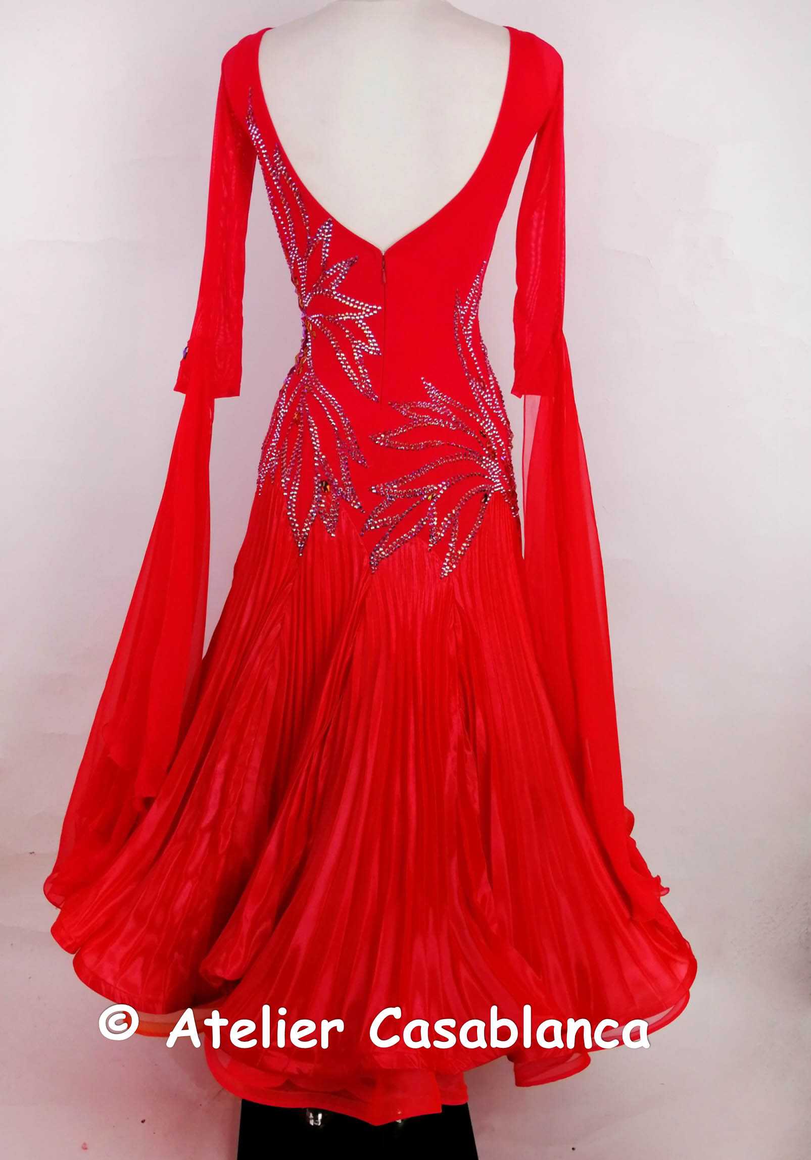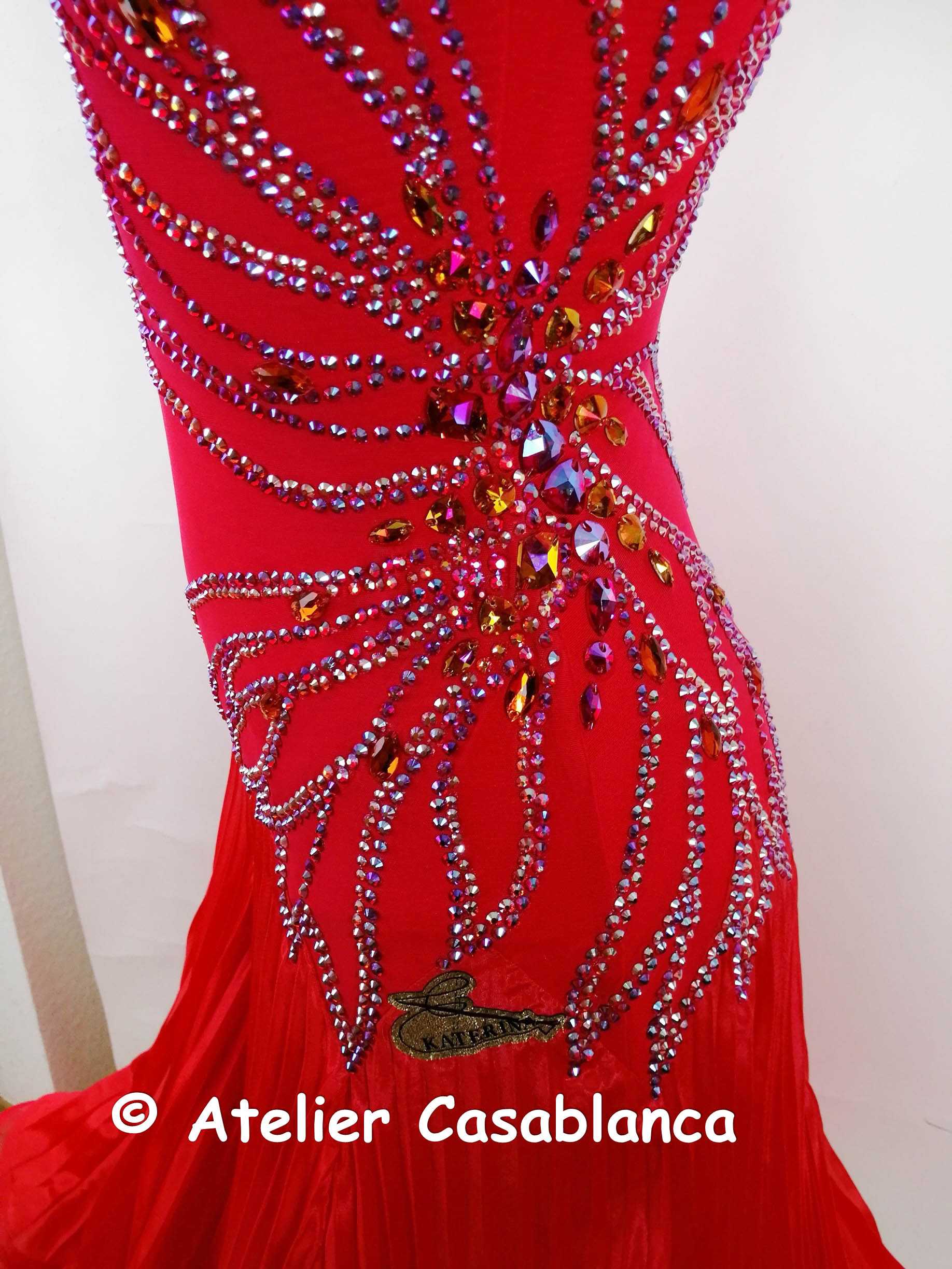 アトリエカサブランカで常に大人気の超素晴らしいウクライナのダンスドレスブランド、「カタリーナ」制作の未使用新品の赤の七分袖のスタンダードドレスです。