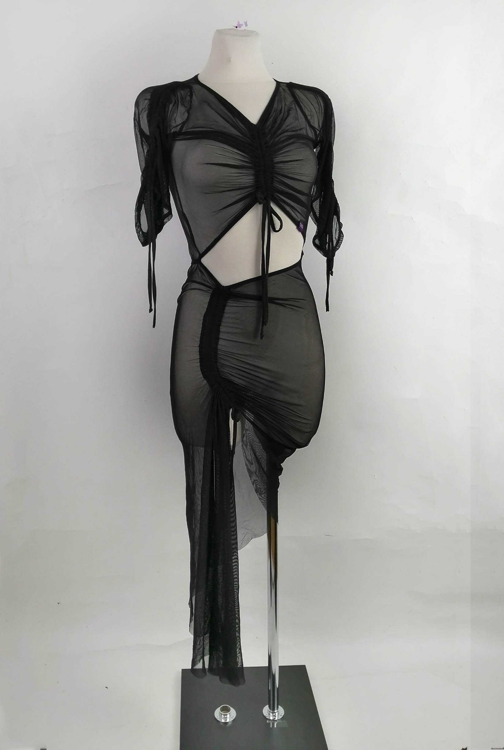 ウクライナのラテンチャンピオンのタイトルと世界選手権ファイナリストのタイトルを持ち、UK戦やロンドンインター、ブラックプールなどのビッグコンペで常に上位にいる大変すばらしいラテンダンサー、ヴィクトリア・マイスター選手のためにウクライナのダンスウェアブランド、DBSが制作した、メッシュ素材、五分袖でロングのルンバスタイルのラテン用ワンピースです。