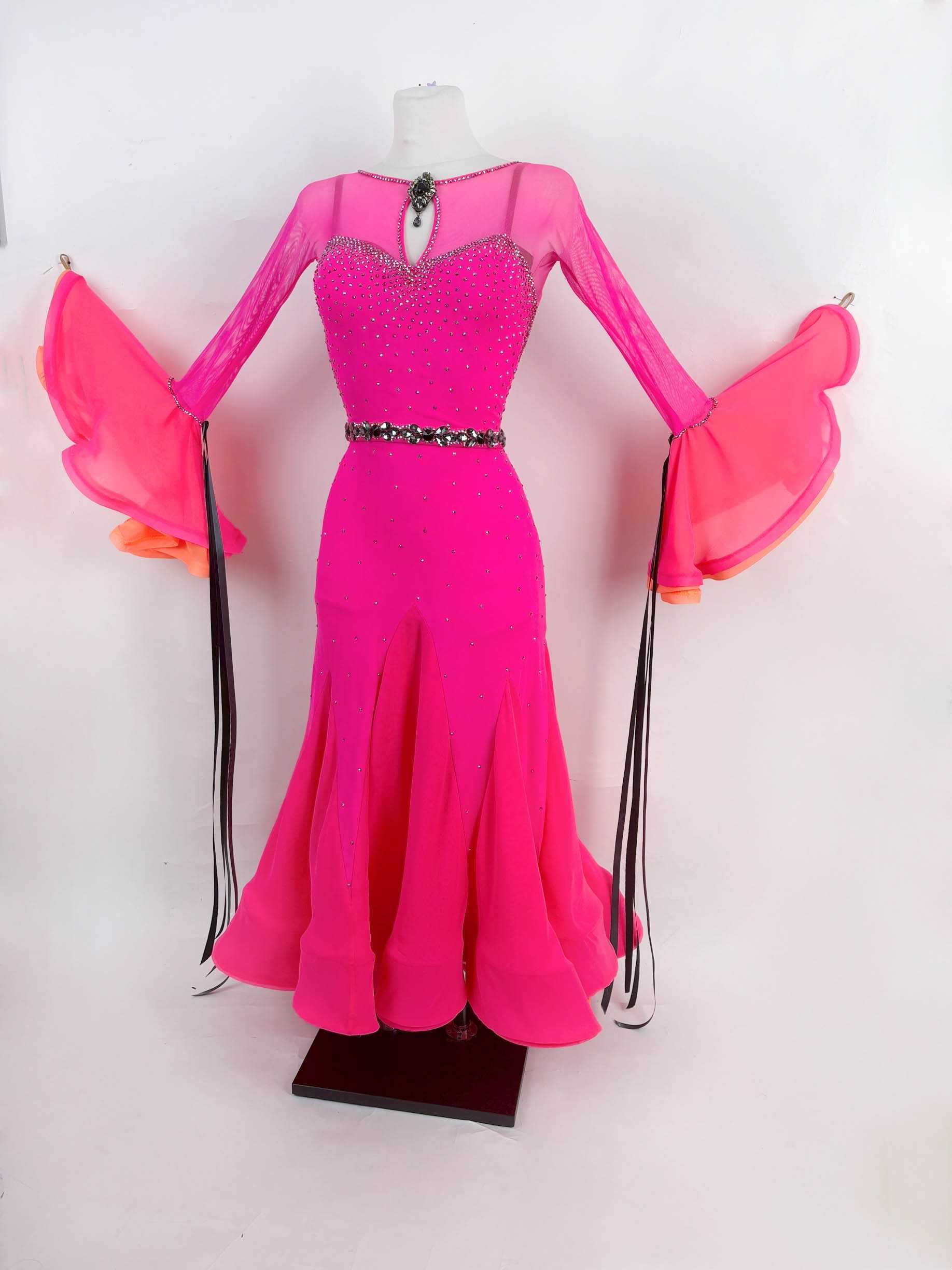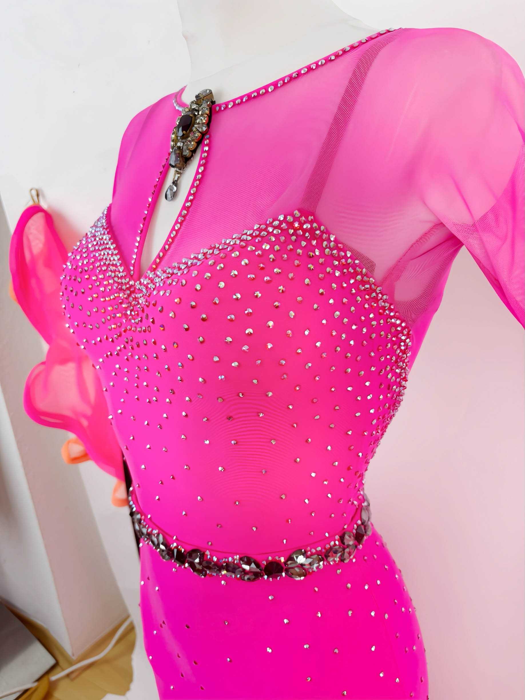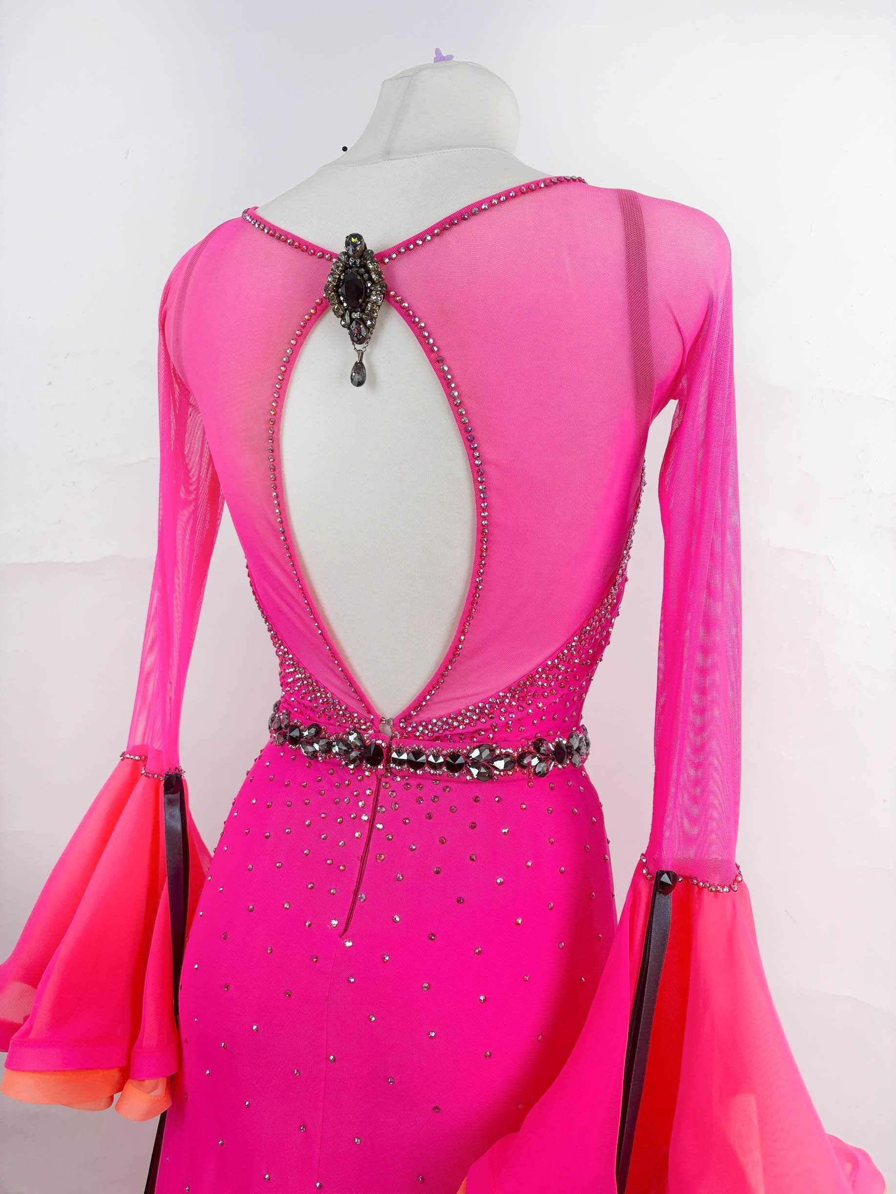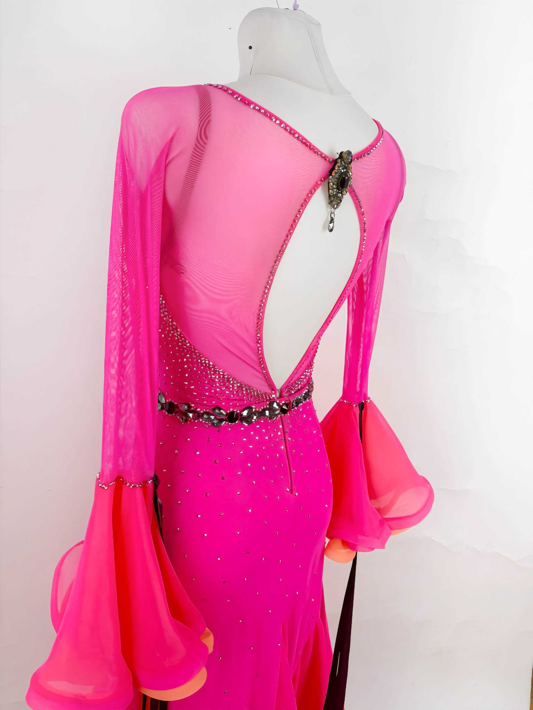 リトアニアのラグジュアリーブランド、「DLK」がドイツの選手のために制作した、鮮やかで美しいはっきりとしたピンクにオレンジを組み合わせた、シンプルながらスタイリッシュで大変美しい長袖のスタンダードドレスです。