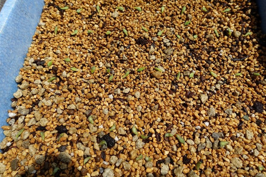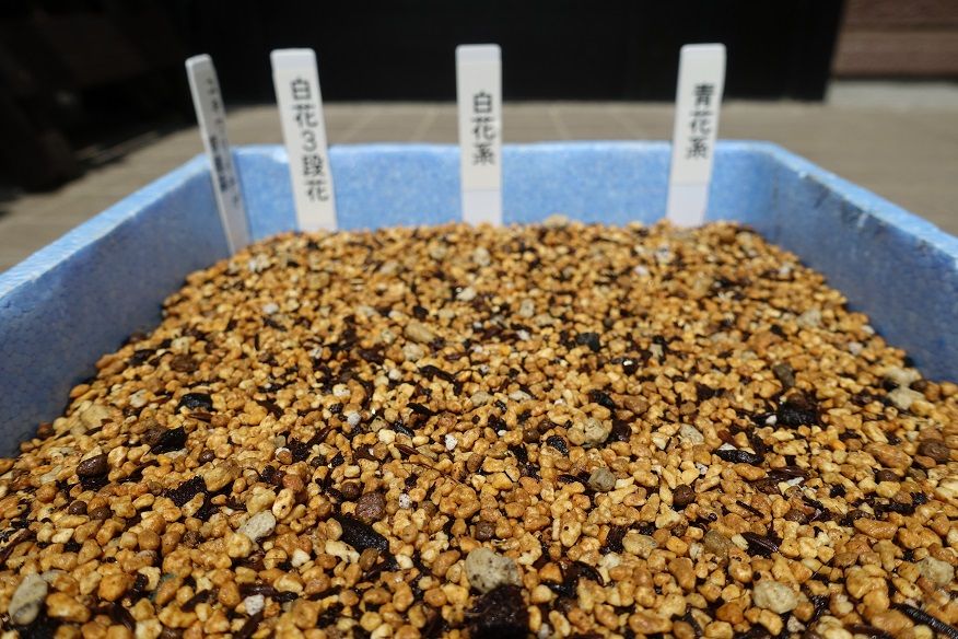 育種箱には用土(日向土(中,小粒4:硬質鹿沼土小粒4:腐葉土2)が