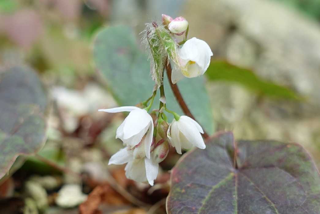 バイカイカリソウ  西日本に自生。 小さい々(約2cm)程の白い花です。