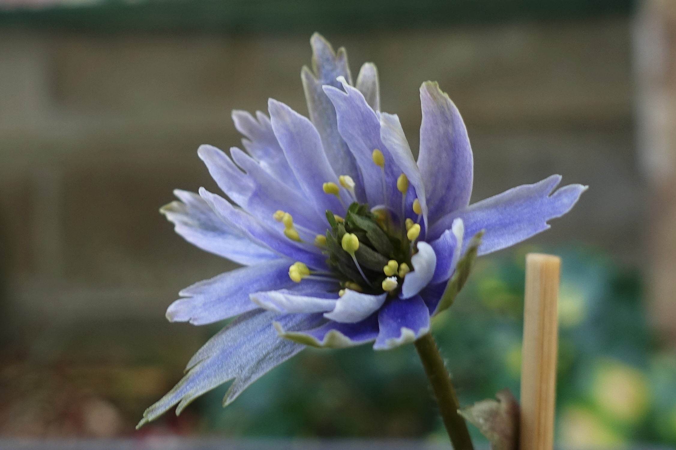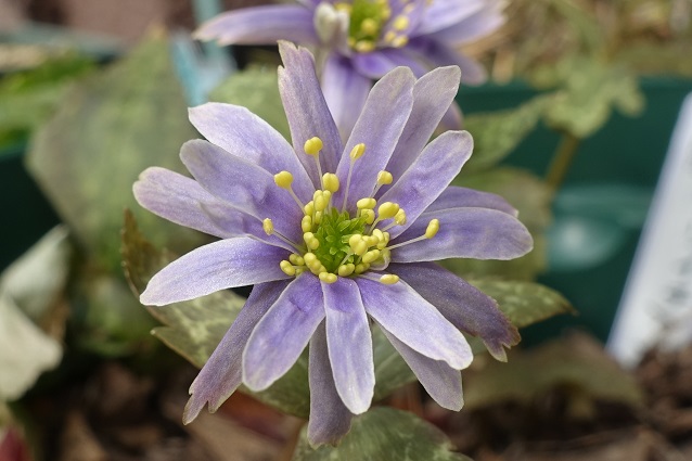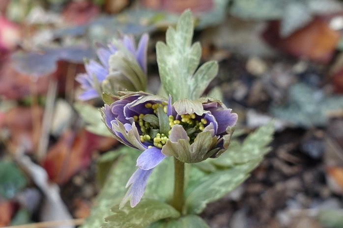 モスグリーンから瑠璃色に変化したユキワリイチゲの3段花