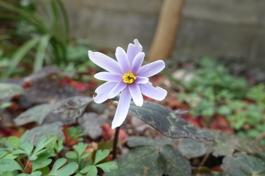 我が家の庭で、例年真っ先に咲き出すのはユキワリイチゲの3段花と