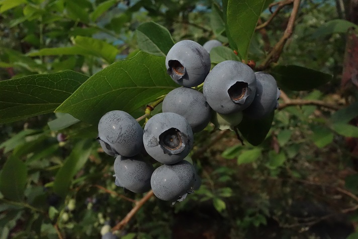 2024年夏、食べ頃のノーザンハイブッシュ系スパルタン 朝一で収穫したブルーベリー このブログにはなかなか登場しませんが、私がブルーベリー栽培を始めて、この春で13年目になります。 栽培本数は暖地系品種のラビットアイが5品種8株、寒地系のノーザンハイブッシュが4種4株、中間地系品種サウザンハイブッシュ系3種6株、合計18株を育成してきましてきました。栽培のスタート時は、3年生株を購入しましたので樹齢は16年生となります。特に1本の幹で成長するノーザンハイブッシュ系のチャンドラー、スパルタンなどは株元の幹回りが、30cmを超すほどの大株になりました。 昨年秋、その2株を畑から我が家の庭に移植する事にしました。 移植したブルーベリーの大株。 左側 チャンドラー 右側 スパルタン 庭の西側に並べて植えました。2本とも大株ですので、かなりの根張りでしたので、移植時にはかなりの部分の根を切り落としました。根の量と、枝の数も半数ほどまで切り取りました。枝の量と根の量とのバランスを取らないと枯れてしまいます。ですので移植初年度の今年は、収穫量はほとんどありません。枝先僅かに、花芽が残っている程度です。 枝先にわずかに残った花芽、かなり膨らんで来ました。この花芽1個に10個ほどの花が咲き、受粉に成功すると美味しい実になります。そして7月初旬頃には収穫となります。 このスパルタンで実の大きさは、21mm~23mmと大きく風味があり本当に素晴らしい味です。 左側に植えているチャンドラーは、更に大きな実がなります。その大きさは25mm~27mmと、500円玉を超す大きなの実が成ります。しかも大変美味しい食味で、ブルーベリー界の王様とも呼ばれています。 本格的な収穫は、来年以降になりますが、非常に楽しみです・ 接ぎ木編は次回。 今日はこの辺で。
