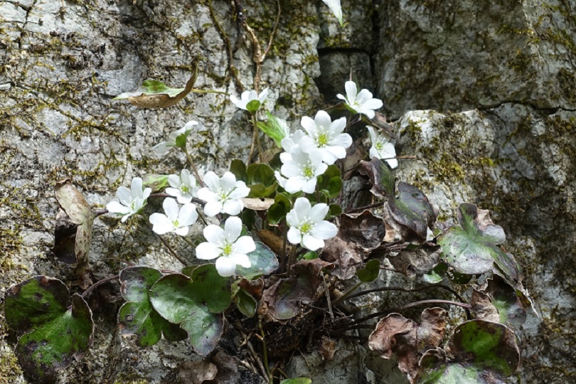 一昨日、この年初めての山野草の自生地探訪へ行ってきた。花友と3名、朝8時に家を出て、最初の目的地へ着いたのが約2時間後の10時ちょうど。場所は、山野草仲間には超有名な場所。しかし入り口には車一台もおらず、どうやら我々だけみたい、ゆっくり廻れそうだ。 まず目に飛び込んできたのは、今まさに盛りの時を迎えている雪割草。 雪割草 この場所は石灰岩で谷が形成されています。従って写真のような、石灰岩の割れ目に僅かに出来た、土だまりに落ちた種子が長い年月をかけ大きな株に成長し、あちこちで見事な花を見せてくれます。自生している雪割草は、そのほとんどが白花ですが、まれに薄いピンクの花も散見されます。 雪割草は谷の全域、谷底から20~30mの高さの位置まで自生しており本当にその数に圧倒されます。 ミズネコノメソウ 道の路肩からのり面に広がっている。 この場所には、ユキワリイチゲも雪割草に負けず、谷のあちこちに群落を作っている。 真っ白のユキワリイチゲ 丁度見頃の時期に出会えた。例年今頃は終盤を迎えている時期だが今年は約20日ほど遅れている。ラッキーだった。 道路のり面に、群落を作っている。数年ほど前と比べると、数倍増えている。 この谷はカタクリも多く自生しているが、まだ蕾だった。ニリンソウもやっと根生葉が出始めで、可愛い花が見られるのはまだ先のようだ。 約2時間ほどを谷で過ごしたが、その間我々のみで、他の来訪者の姿が見えなかった、珍しいこともあるもんだ! 今日はこれまで。
