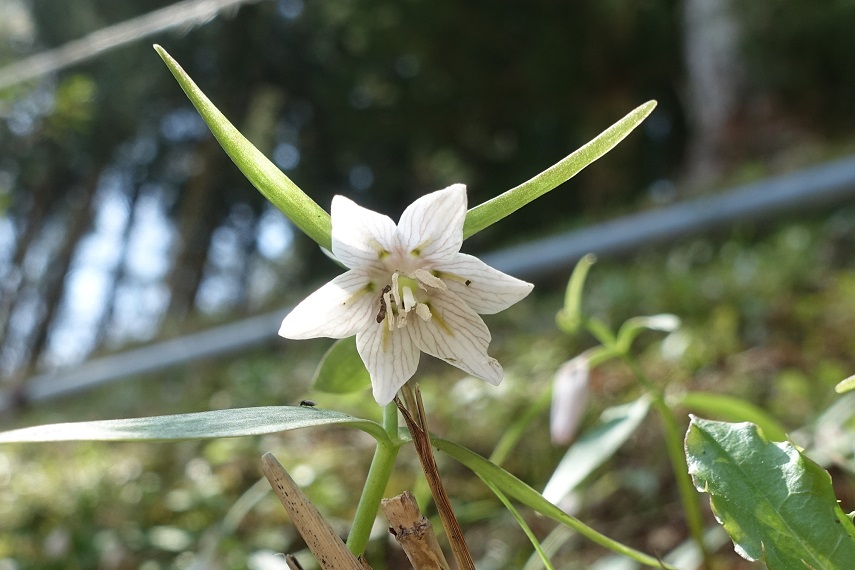 5年ぶりの島根県川本町の出雲コバイモ自生地探訪です。 自生地斜面に咲く出雲コバイモ 島根県に入る頃には、山はすっかり雪景色!前日に降った雪で山は真っ白。 道路奥に見える山は三瓶山。 気温は朝9時現在2℃ 寒い! 三瓶山から西へ約30分、川本町の自生地へ着きました。 道路に面した東向き斜面いっぱいに、広がる出雲コバイモの自生地。「今年は、例年より約2週間ほど遅れている」と管理人さん。前回訪問したのは2020年3月22日。なるほど今回より約10日早い訪問でした。リンク 前回の出雲コバイモ自生地訪問広い自生地の至る所に自生しています。 綺麗な釣り鐘型のフォルム 通常はうつむき加減に咲くケースが多いが、たまに元気に正面を向いた花も見られます。 自生地で約40分ほど。すっかり堪能し次の目的地へ。 今日はこの辺で。
