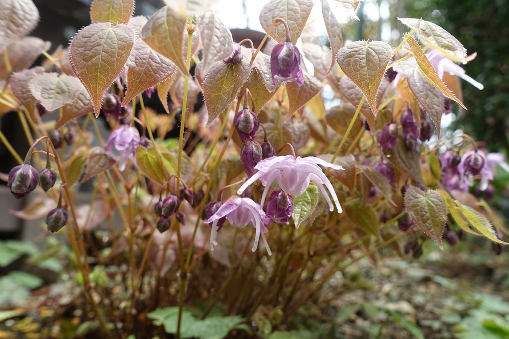 今年の冬は寒さが長く厳しかったが、3月に入り連日の好天続きで、「遅れている!と言っていた庭の山野草たち」、あっという間に取り戻し、現在ではちょっと早くないとの声が出るようになりました。イカリソウの昨年の写真記録を見て見ると、今年の今頃の状況は、昨年4月中旬の様子とほぼ同じです。やっぱり、約半月早いんです。 トキワイカリソウ白花 2色咲品種 多摩の源平 小型のイカリソウ 北岳赤花姫イカリソウ 花は、葉の上で咲くので花が目立ちます。 トキワイカリソウ 薄紫花 トキワイカリソウ ピンク花 最後まで色落ちがありません。 トキワイカリソウ 紫花 距の先端が白くなる品種 トキワイカリソウ 薄いピンク花トキワイカリソウ紫花 トキワイカリソウ ピンク花 トキワイカリソウを庭のあちこちに植えています。一口にトキワイカリソウと言っても、白花から薄いピンク・濃いピンク・赤花・紫花と色の変化が大きく、それぞれに楽しめます。 トキワイカリソウの花の大きさは、3cm~約5cmと、色の変化と同様に大きさにもかなり変化、違いがあります。 バイカイカリソウ バイカイカリソウ 花の大きさ、約2cmと小さく可愛い品種です。 イカリソウでも遅咲きの品種は、まだ出葉もしていない品種があるなど同じイカリソウでも、花の変化と同様に、咲く時期も1ケ月程も違うなどかなり生態に違いがあります。不思議で面白いですね! 今日はこの辺で。