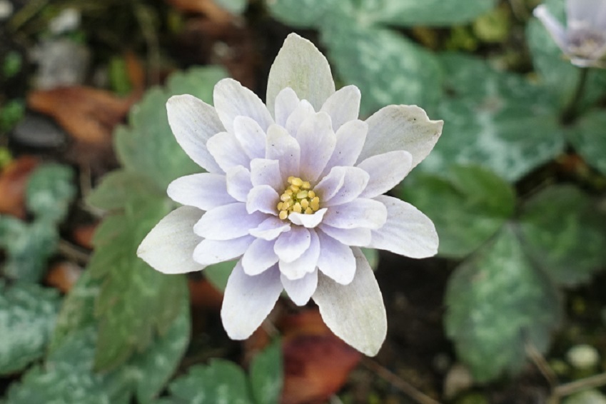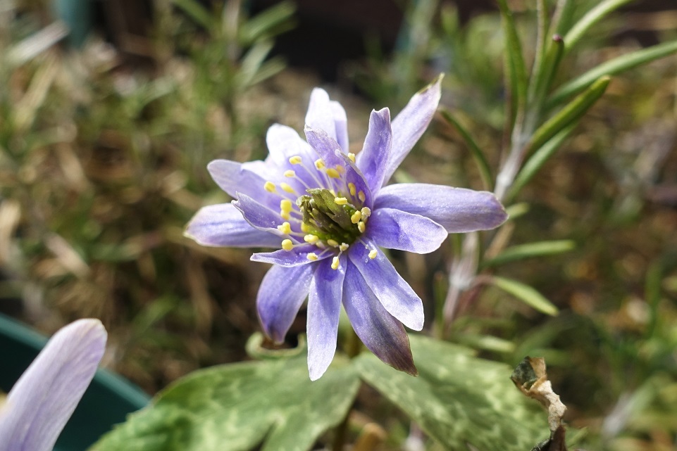 遅れていたユキワリイチゲが、連日の暖かい気温で続々咲き出しました。 文字通り瑠璃色のユキワリイチゲ 萼片の先端の斑切れ弁が特徴の個体です。 この個体は、根生葉の葉色が黒く濃いのも特徴の一つです。 こちらは、ほんのり黄色味がかった白花ユキワリイチゲ当地では白花のユキワリイチゲは珍しい部類に入り、貴重な花色です。瑠璃色の花色が多い当地では逆に目立ちます。 アップ画像 昨年(2023.03.2)咲いた白花ユキワリイチゲ 例年ですと真っ先に咲き出すユキワリイチゲの3段花。今日やっと開き始めました。花中央部の雌しべ位置に、濃いモスグリーンの花弁が覗いています。 我家に一株だけ存在する、鉢植えの福寿草(品種:福寿海)今年も鮮やかな黄金色を見せてくれました。 今日最後は節分草。庭のあちこちに、種から育てた球根を植えています。丈夫で手が掛からないため重宝します。可愛い花はこれから本番です。 この処、春本番を思わせる天気が続いていますが、ちょっと少し速い気がします。いづれ寒さはぶり返す事でしょうが、それでも少しづつ確実に春は近づいています!