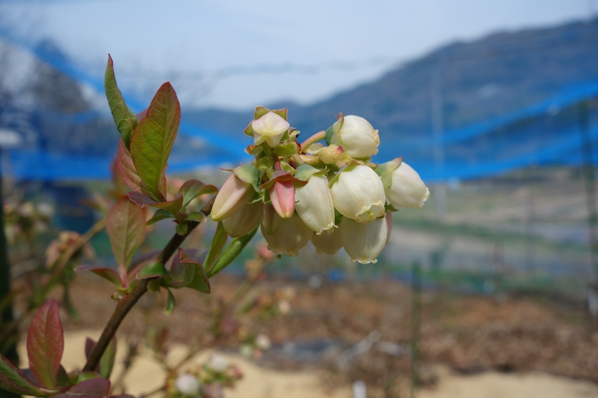 ブルーベリーの花が満開になり、受粉が始まりました。 ハイブッシュ系ブルーベリー スパルタン コロッと丸い花です。 上の写真から約2週間後、受粉が済んで実の肥大が始まりました。 収穫は6月後半からになります。 こちらは同じハイブッシュ系のチャンドラー ブルーベリー界でも一二を争う実の大きさなので、花も長く大きいです。 こちらも少し遅れて受粉が始まり、あと半分ほど花が残っています。 チャンドラーの収穫は、7月中旬以降とやや遅い。 昨年秋遅く、この2本のブルーベリー、畑から家の庭へ移植したたため、根をかなり落としてきたので、それに合わせて枝数も落としたため2,3本の枝にしか花を咲かせていません。 来年以降に期待!です。 今日はこの辺で。