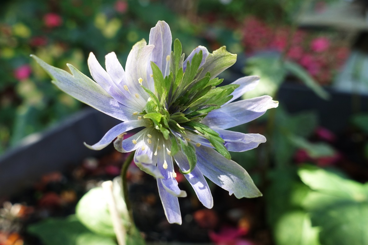 今日の1枚 瑠璃色のユキワリイチゲ 2023.02.15 我家で撮影 今日は、昨日までの寒波が少し緩み、日中気温も10℃まで上がりました。 我家で1番花になりそうなユキワリイチゲ。(2024.01.27 PM3:00)萼片の先端は斑切れ弁です。 横顔です。萼片の外側が赤紫色(通称:裏紅)になっており、その影響で花色は紫がかった瑠璃色の花が咲きます。 蕾の時の方が萼片のワインレッド色が濃く鮮明です。 ユキワリイチゲの今年の開花は、2月にずれ込みそうです。