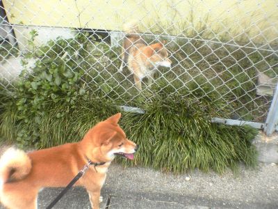 ん~彼女 散歩に行く途中の『わんこ 』なのですがかなりの『老犬』みたいで・・・ 『大和』は全然その気がないみたい まだまだ『子供 』ですから人間年齢で 16歳くらい 我等が散歩に出掛けると待ち構えていますちょっと『ストーカー』気味 『大和』は友達が増えたと喜んでますが・・・たまに『おしっこ』を掛けちゃったり この『恋』は実らないかも では