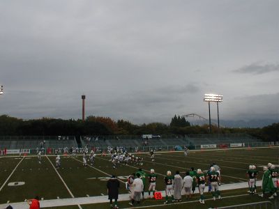 『クラブベアーズ』 対 ホークアイ 10/1(万博記念公園エキスポフィールド)『X League(社会人アメリカンフットボール)』を観戦です 朝から雨 が降る中、『万博記念公園エキスポフィールド』へ試合開始の16:40 結局、まだ雨が降ってます 時折の豪雨・・・ 選手は大変な『コンディション』で可愛そうでした チアの娘も寒そうで 観客も大変 結果は 『クラブベアーズ』 0-17 ホークアイ(旧 全日空) で惨敗でした次回は10月15日(日)に予定 対 トライスターズ クラブベアーズ公式サイトがんばれ 『ベアーズ』では