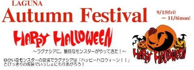 「HAPPY HALLOWEEN !! ~ラグナシアに愉快なモンスターたちがやってきた!~」 連休中に、地元の『アミューズメントパーク』へ 『ハッピー・ハロウィーン・フェスティバル』をやっていました 『ハロウィーン 』を味わってください 『帆船』の上に登れます 『ジェットコースター』ですアメリカ人ではないので『ハロウィーン』の経験は無いのですがでは