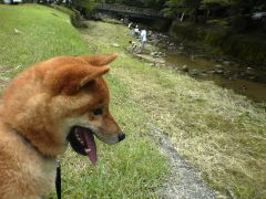 さすがの暑さにダウン寸前 ここ数日の暑さで『わんこ』も人間も、ダウン寸前 ちょっと、涼を求め清流へ 近所なのですが、体感が数℃違うような 初の川での水浴びに、『大和』も興味津々? いざ、川中へ行こうとすると~♪約1匹、『いやいや!』・・・『ん!』 慣らすため、川水を体中にかけて・・・水深20~30cmの所へ・・・最初は『キョロキョロ』するも、一気に川岸へ『ダッシュ!』 後は前足を踏ん張って『いやいや!』 近づこうとすると『ウウッー』と威嚇する 『なんじゃー』水が怖い?それでも『男』かー!・・・ちゃんと付いとんのか~相変わらずの『軟弱ぶり』・・・悲しい そんな子に育てた覚えは・・・何とかして下さい~ では
