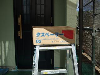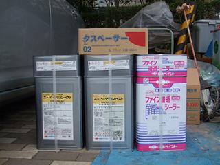 今日は養生ですが、朝から塗料が届いたので、まずはそちらのご紹介。屋根の塗料は日本ペイントのスーパーシリコンベストとファイン浸透シーラー。私が今まで使った遮熱塗料で一番効果があって長持ちする塗料です。そしてその上に乗っているのがタスペーサー。塗装後の漏水を確実に防いでくれるパーツです。そして今日の作業は養生。3人で一日中やってました(汗)。まだ全部は終わっていませんが、終わった箇所の写真です。明日はお休みですが、月曜日は出来そうです。次の作業は引き続き養生と外壁の下塗りです。