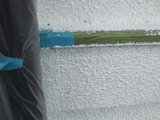 今日はまずメッシュシートを張りました。そして高圧洗浄なのですが…まずは今の現状です。これが東側と南側の屋根。 そしてこれが北側と西側の屋根。 同じ屋根なのに、コケ(カビ)の付き方がこんなに違うんです。「さて、じゃあ高圧洗浄をしましょう」と準備をして、エンジンを廻したら何故かエンジンがかからない。何度も何度もやってもすぐにエンジンが止まってしまう。どうやら壊れてしまったようです(涙)。すぐにレンタルの洗浄機を頼んだのですが、届くのが夕方…。今日は高圧洗浄が出来なくなってしまいました…。凹んでいても仕方が無いので、次の作業へ(笑)。エアコンのホースカバーってこうやって付いていますよね。 このまま塗ると当然の事ながら、カバーの裏側は塗装出来ません。でも万が一エアコンが壊れて外す事になったら…。カッコ悪いですよね。そんな訳で弊社ではこうやって外しちゃいます。 これでカバーの裏側も綺麗に塗装できます。全部で5本あったので、全て外しました。これで今日の作業は終了。明日は、明日こそは高圧洗浄です。ご近所の皆様には御迷惑をおかけいたします。宜しくお願い申し上げます。