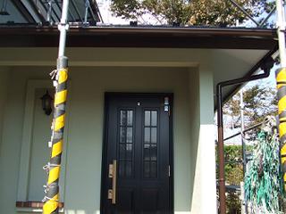 建物の塗装は全て終了しました。メッシュシートも外してしまいました。仕上げた玄関周りです。明日、足場を解体しながら、残ったウッドデッキの塗装をする予定です。天気が心配です。