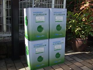 今日は高圧洗浄。その前にシートを張った状態です。何となく恥ずかしく感じました(笑)。いよいよ洗浄。こんな感じでコケを剥がすように洗浄します。洗浄後の状態です。綺麗になったのが判りますか?そして今日、外壁の塗料が届きました。今回使用する塗料は水谷ペイントのナノコンポジットW。弊社で使用するのは今回が初めてですが、塗装業界ではかなり評判の塗料です。明日は養生ですが、天気が心配です。