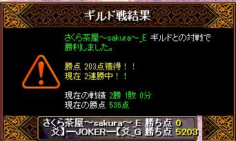 1/21(水)23:04~お相手:さくら茶屋~sakura~_E様よろしく!結果参加6人お相手は1PT+ちょいの9か10人だったかな?3部Aのお相手でしたが、ベストメンバーではなかった模様。序盤~中盤までは、0-0の膠着状態でした。決して交戦が少なかったわけでもないのですが、お互い火力