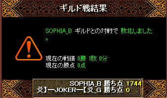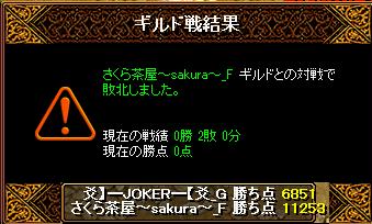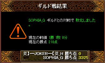 10/7(水)22:55~お相手:SOPHIA_G 様よろしく!結果参加7人お相手も1PT。1PT,WIZ2でとても硬かった、ってのが率直な印象。んでもって妨害と火力の連携がうまく、決定率が高い!お相手も火力2人でしたが、少ないチャンスをしっかり取られたってかんじ。サッカー日本代表にも見習ってほしいもんですwこちらも裏から取りたかったのですが、それぞれが硬い&アスヒが早く0点><
