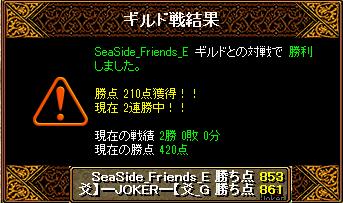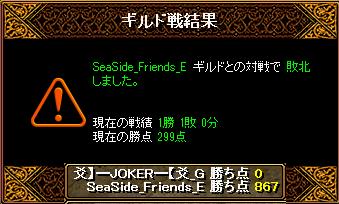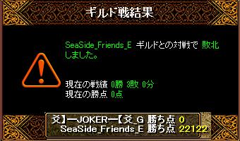 11/16(月)22:59~お相手:Seaside_Friends_E 様。よろしく!結果参加7人お相手は1PT+ちょいくらいかな。毎度毎度のseasideさん。今まで勝ったり負けたり、何度も対戦してきましたがこれだけ大差になったのは初めてじゃないかな?まぁこちらの霊術さんお休みでお相手が2に増えてたってのもありましたが火力もUPしててWIZも増えてた?今日はまるで勝ち目がなかったなー。GV後に、「揃った時にまた・・・」的なコメントいただきましたが心の中で(いや、、1人少ないだけなんだけどなぁ)って思ったのはナイショw