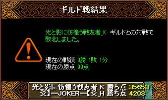 1/20(水)23:00~お相手:Solidarity_J 様よろしく!結果参加4人・・・しかもWIZ,天使なし!お相手には申し訳ないようなGVでした。ひたすらゾンビで全滅を免れる、ってだけの戦い。。まぁそんななかでも2度スキをついて得点できたのだけが救いかな?wランクは1つ下でしたが、2PTフルくらい?それ以上?で圧力がすごくベストメンバーでもどうかな~って思いました。