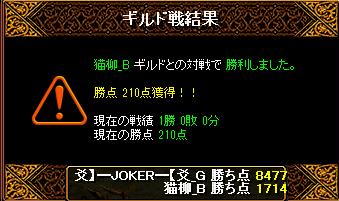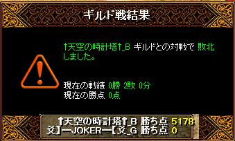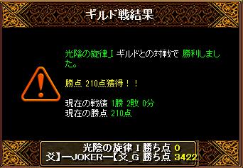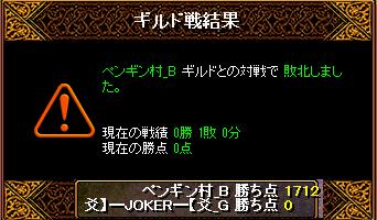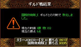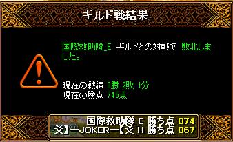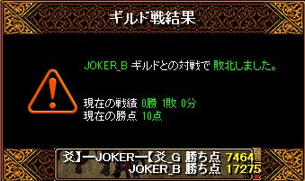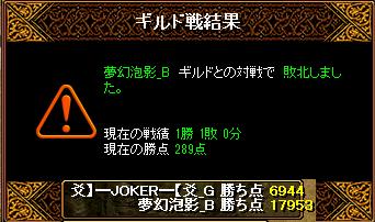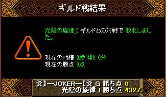 12/2(水)22:57~お相手:JOKER_B 様JOKER対決!よろしく!結果参加7人あれれ~? 8人INしてるのに7人しか転送されないよ~?と言う訳で、天使1人寝落ちwお相手は1.5PT程?序盤はこちらペース。このままいけるか!?と思ったのも束の間こちらの天使が落とされてから真空etcで一気に逆転されちゃいました。このあとも同様に、天使落とされ~一気に失点~ってパターンで崩されまくりましたー><逆に言えば、もし2天使いてカバーし合えれば、失点する場面も少なかったんじゃないかなー。ってことで戦犯は・・・寝落ちnrdn!