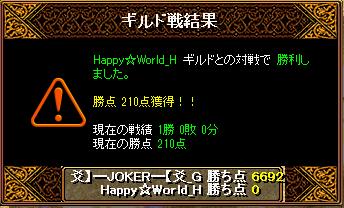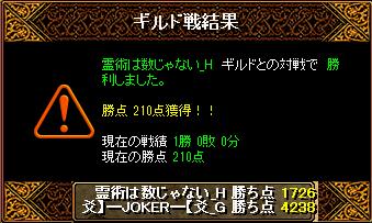 10/26(月)23:00~お相手:Happy☆World_H 様よろしく!結果参加8人お相手は1PT+ちょいの10人くらいかな。お相手の霊2が脅威でしたが、他の妨害が少なく支援陣が自由に動けていたので、ピンチもピンチと思えないくらいやりやすかったです。ふと思ったんですが、ウチの大黒柱のメインWIZさんが今日はお休みだったんですがメインWIZなしで勝ったのって初じゃね?そのときって、WIZ0になっちゃうか急造WIZだからボロ負けしちゃうかだったと思う。けど最近は様になってきたんじゃないかな。あんま褒めると調子ぶっこいちゃうからこれくらいにしておきましょうかw今日くらいチキン作戦の方がちょうどいいね!
