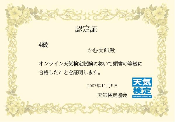 天気検定  の認定証がすぐにメールで届きました。