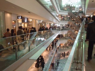 中に入ると、うーむさすがに物見遊山の観光客とおぼしき大量の人々が、スロープ状の館内通路をゾロゾロぞろぞろと回遊している。しかし、チェックするとほとんど誰も手に買い物袋を持っていない。今のところ、ファッションモールというよりも、単に入場料の要らない観光名所と化しているようである。これでは六本木ヒルズの二の舞で、観光客はわんさか来るものの物販店舗はなかなか厳しいかもしれんなぁと思いつつ先を急ぐ。