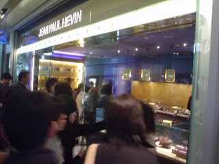 あった。本日のお目当て「ジャン=ポール・エヴァン」の店舗発見。だが、店内には一度に5名までという大袈裟に厳しい入場制限が敷かれており、なかなか入店できない。なぜだ。チョコレート店で暴動でも起こるというのか?ワシのようなチョコレートジャンキーの乱入を警戒しているのか?結局、警備員が怖い顔で通せんぼする前で10分程待たされた後、ようやく店内へ。