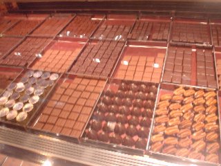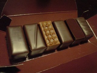 おぉー、チョコチョコチョコチョコの海。種類が多すぎて何をどう選べば良いのかさっぱりワカラナイ。えーと、じゃあその右端からざざっと30個ください、などとオトナ買いでもしたいところだが、話によるとここもチョコ1粒が数百円ということなので、おとなしく素人さん向けに用意された6粒で1,680円というパッケージを購入。