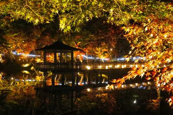 自宅からすぐの岡崎東公園の紅葉ライトアップを見に行った。まだ緑色の葉が残っていて全…
