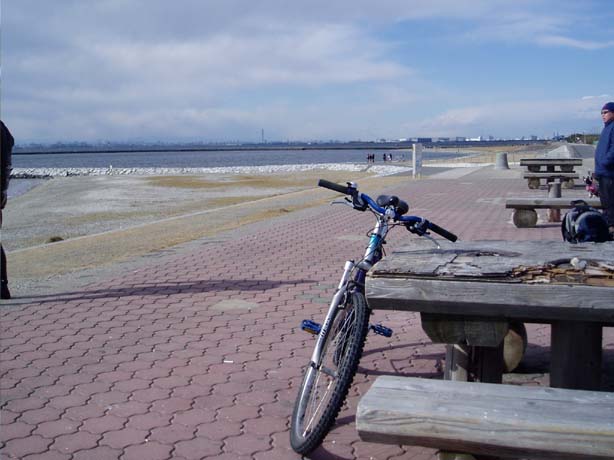 かなりの風。MTBで向かい風は厳しい。海岸にでて初めて気づいた。スカイツリーが見えた。遠くからみると本当良く分かる。