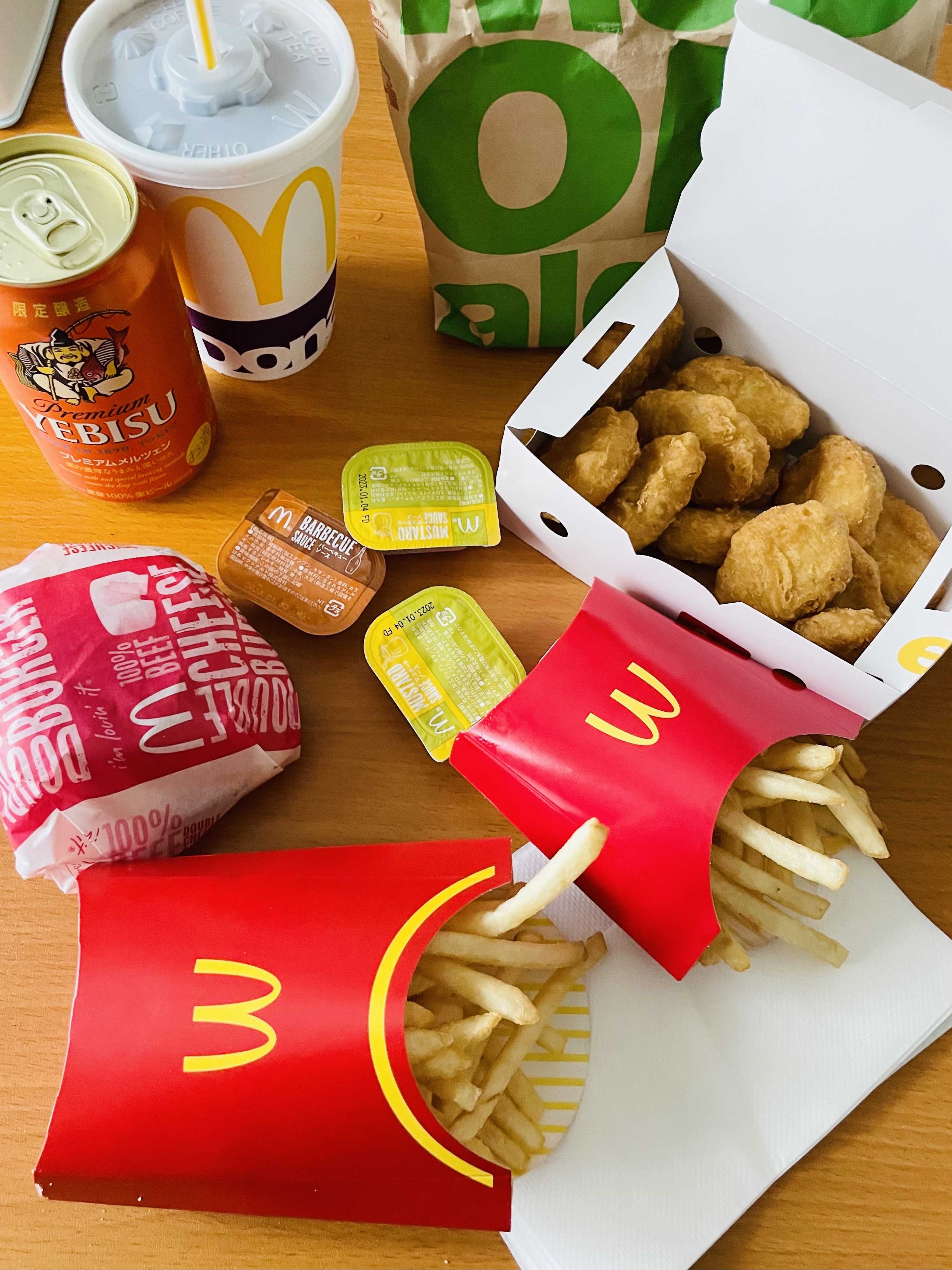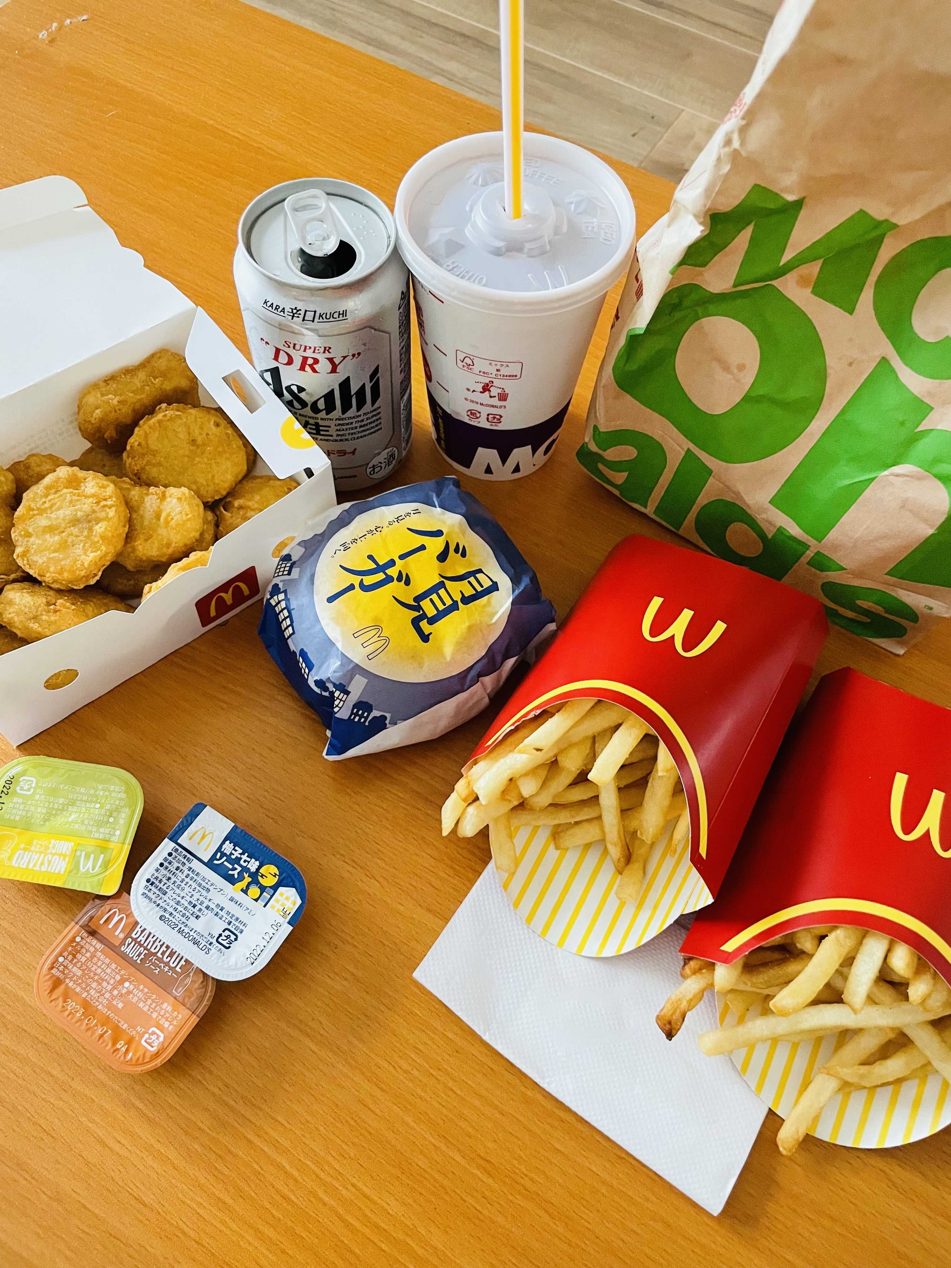 タイヤ交換してきたー!いつもは11月に入ってからやりますがみんな早めにやってるから急いだわそろそろ雪降るんか???息子のチャリが壊れてしまったなんかペダルが前に回らない~もう雪降るなら今年は諦めましょう交番へ持っていって防犯登録の解除をしてもらおうすぐにでも捨てたいのでね交番ってどこやねん?地図で確認してからチャリを押しながら向かったスマホを忘れた事に気づいた2キロくらい歩いても交番が見つからない!スマホが無いとマジで生きていけませんね息子と2人で途方に暮れていた交番がない!!枯れ葉の掃除してるオジサンがいたのでこの辺に交番ありません!?と聞くと隣だよ~と言われるそこから5歩で着いたたくさん歩いたのでマックをウーバー!筋肉痛ですわわたしはいつもバーガーは食べませんやっぱビールに合うのはポテトとナゲット!いつ食べても美味いソースは3つ付いてくるけどナゲット15ピース食べるのにソースは1つで充分!残りのソースはパンに塗りたくってチーズのせてトーストしてる(^^)/一応サラダも食べましょオレンジのエビスは初めてだ美味しかったよーぶっとい大根もらったみずみずしい!!スライサーしてても水が飛び散るわデカすぎて切らないと冷蔵庫に入らん!急いで食べないとどんどん水分がなくなるね2本目は一番搾り~テーブルをさっと片づけて2時間お昼寝!息子はスーパーへお買い物へ行ったセルフレジのやり方がわからなくて何も買わずに帰って来た・・・なんで店員さんに聞けないんだろう??わたしも子供の時はモジモジして聞けなかったけどさ・・・今は何でも聞いちゃうよね~夜ごはんは中華をウーバー!油ギッシュチャーハンです北海楼っていう台湾料理の店だね安くて人気店みたいだけどウーバーだと高いっす餃子がもちもちで美味しい!お母さんが作る餃子って感じ息子が魚の醤油さしを初めて見たと言っていたお弁当と言えばこれ!だったと教えたメンマは美味かったけど軟骨揚げがマジでマズかった臭すぎ!マズい物でカロリー摂取が許せん食い意地により残すこともできん先取りしてお弁当を作っちゃいますタイヤ交換とチャリの処理を頑張ったので料理だけは放棄した高カロリーな1日でした(^^)/