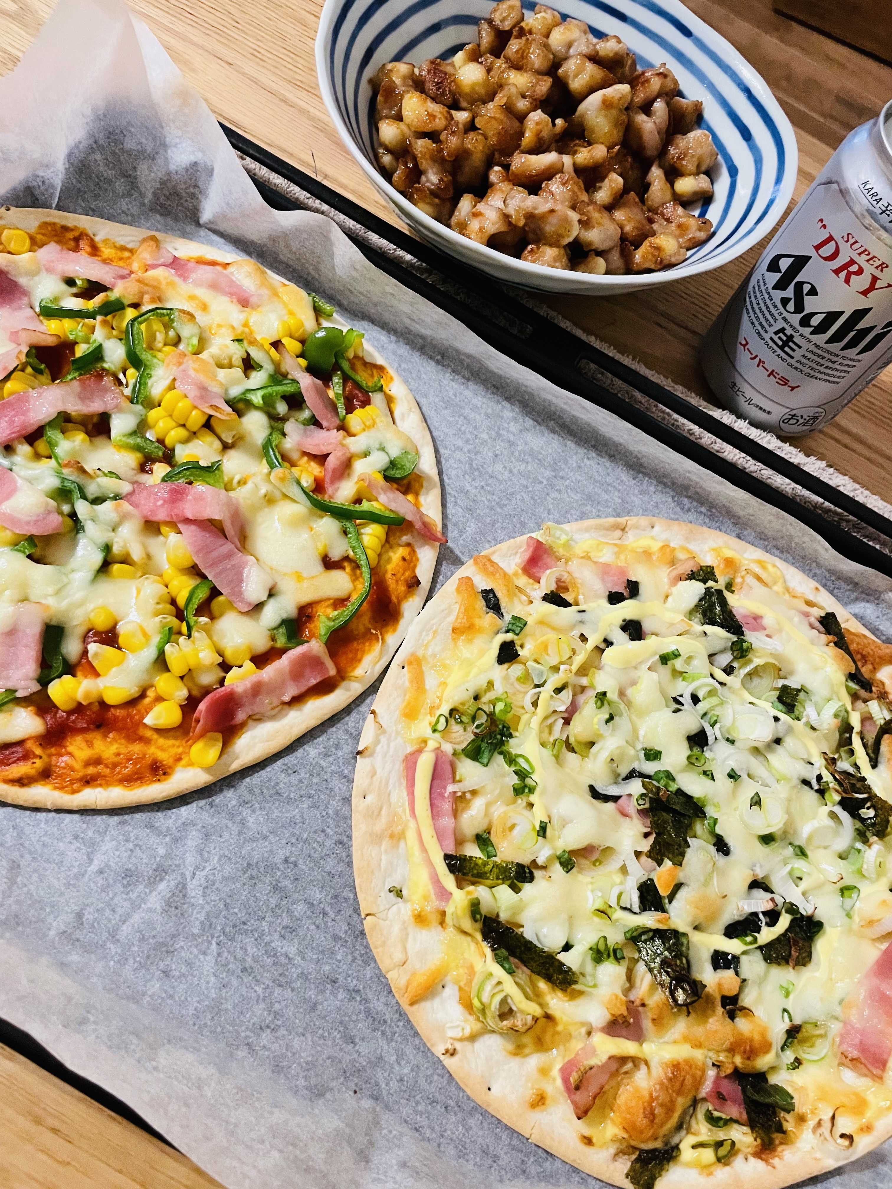 ピザ生地買ってきてピザ焼いた(^^)/ピザ生地3枚入りだと思ってたのに2枚しか入ってなかった3枚入りだった時もあったはずー焼く前手前の和風ピザの方が美味しかったネギと海苔とベーコンとマヨ醤油息子は宅配ピザは喜ばないけど家で作ったピザは喜んでくれるたぶんピザハットとかのボリューミーな感じが嫌なんだと予想ひざ軟骨の揚げ焼き!軟骨の唐揚げを作る予定でした一粒ずつ油に落とすのが辛すぎてまとめて揚げ焼きにしたピザを食べ終わってビックリ!一緒に焼いてしまったようですーコイツは無傷だった焼いても大丈夫なんですね・・・息子の買って来たスナック菓子を食べました買ってくるわりにあんまり食べないんだよね半分以上わたしが食べる事になる太るだろうが!!3日分のお弁当を作って冷凍!おかずは2種・・・謎の物体は黒糖ホットケーキ!息子がホットケーキにハマってるあんまり作ってあげた事なかったなこれからはいろんな粉で試してみようついに・・・わたしのTシャツを着れる日がきた・・・ユニクロのMサイズねこれからはわたしも息子の服を着れるってことか!実に経済的ですな(^^)/