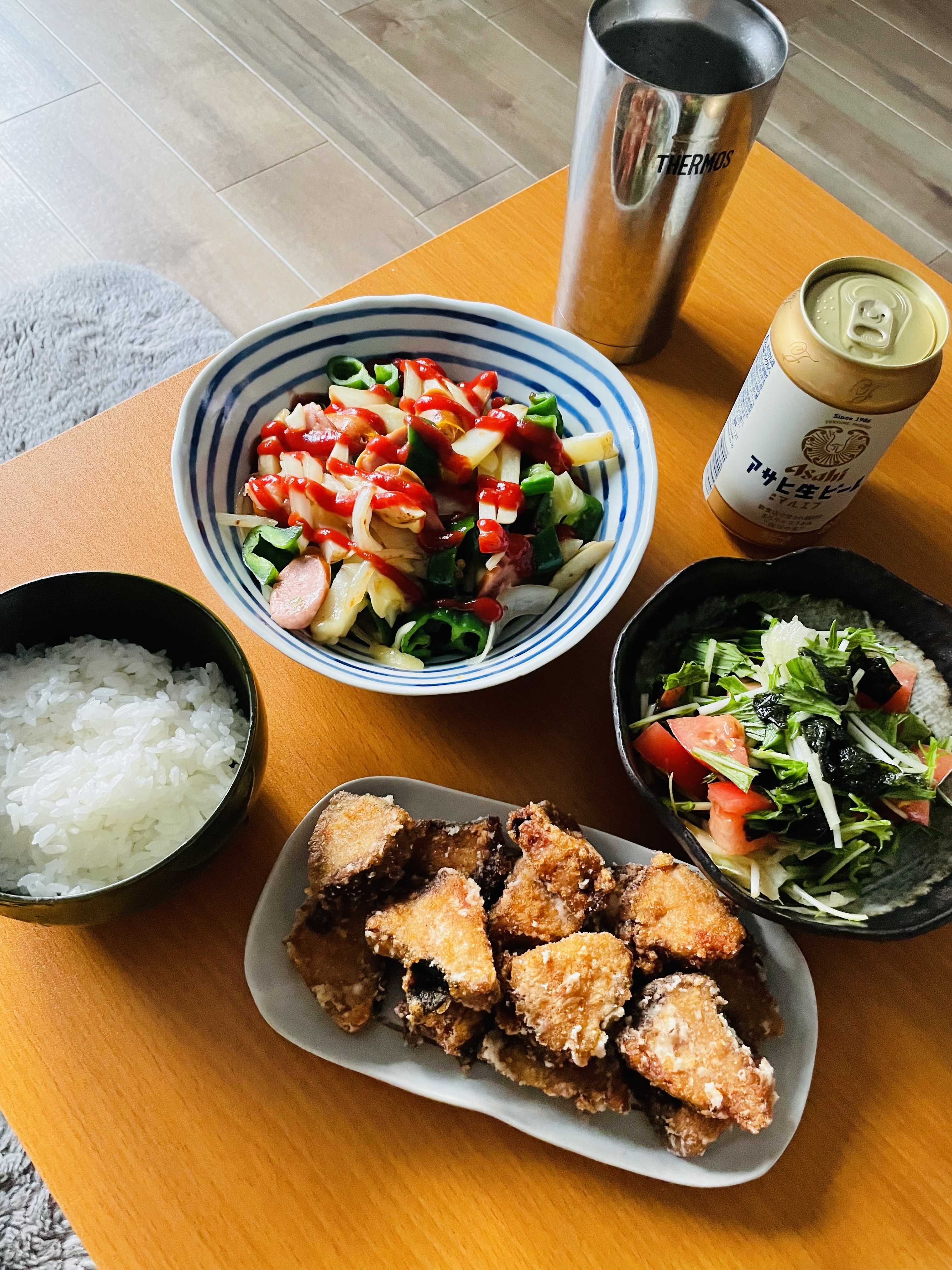 休日のお昼ごはん(^^)/じゃがいも炒めたやつとカツオのたたきで竜田揚げ塩コショウで炒めてケチャップかけただけじゃがいもは皮むきが面倒なので自分では買いませんがー息子が買ってきてくれたので使いましたーカツオのたたきをにたき一番とおろし生姜に漬けるだけ!たっぷりの片栗粉で揚げます!わたしのブログはアクセス数も低くアフィリエイトはほぼ動かない動いたとしてもブログパーツからの買い物だ良くて月に30ポイントくらい貰える程度!そんな中わたしのおすすめアフィ踏んでにたき一番を買ってくれた人がいたんですけど!誰ですか?嬉しかったんですけど!鍋シーズンの到来!野菜はキャベツのみこのBEERYとか言う微アルコールの飲み物は実は糖質高いんですね美味しくもないのに糖質高いって意味がわからないねやっぱり一番テンション上がるのが朝ビールに馬刺しゆっくりゆっくり食べてます霜降り馬刺しは全部食べてしまって赤身で耐えてますけど赤身も美味いわ!息子は3時間おきくらいにお腹が空くそうですこの日は朝にホットケーキお昼にカレーライス大盛り3時のおやつに素麺茹でた日!ベランダで洗濯物を取り込み中に「もうお腹空いたって言うな!」と室内に向かって叫んだらお隣さんもベランダに居たという悲劇またインスタでディスられそうだわ今日は会社のビル敷地内でカメムシが大量発生・・・飛んでるカメムシをかわしながら車へダッシュドアの開け閉め3秒なのにアイツは車に侵入してくる・・・昨日からテントウ虫も車で飼ってる喧嘩しないといいな・・・