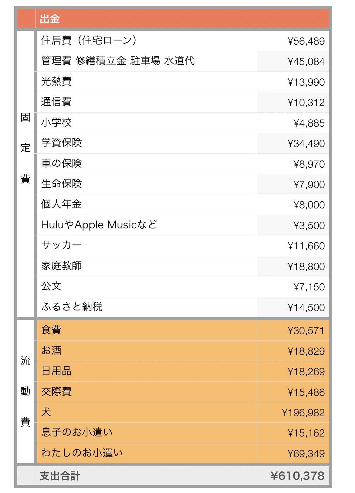 お給料が出たので家計簿を締めます今月から車の保険が10240円→8970円になりましたゴールド免許なので(^^)/スイミングを辞めたので9350円が請求されなくなりましたチワワも居なくなってしまって月に8000円くらいはかかってたかな?これももう無くなりますこれから毎月2万弱固定費が減るってことですねこれからの人生固定費が減るなんて事は無いと思っていた2万はデカいぞ!これでタバコやめたら更に2万浮くのにな・・・息子に大人は空気吸うのに金払ってバカだよねって言われたしっかしチワワさんの入院費にビックリ!良くなったから退院したのではなく家で看取るための退院でしたので高額な入院費になんとも言えない気持ちになる老犬の入院は若い子の入院とは意味が全く違うなと入院を長引かせるより自宅の酸素室で見てあげた方がチワワにとっては幸せだったのかもしれないこの反省を生かすことは二度とできないウダウダいってももう過去には戻れないからな!!!最近食べたご飯撮りためてたやつ行ってみよぅ!チーズタッカルビ風のやつこりゃ失敗よ味は美味しいんだけどフライパンでやっちゃうとすぐにチーズが固まるわ!ホットプレートの保温機能とか使わないとチーズが溶けてくれないねうちのホットプレート保温機能なんてないな素麺のビジュ変えてみた寒くなって来たぞー室内19度今年もついにストーブつけてしまったー冬も素麺食べるのかなあの子は・・・お肉と野菜を炒めてお好みソース&マヨでお好み焼きの完成粉&卵使うより簡単落葉きのこシーズンでした!職場のエライ奴のワイフに作ってもらったこれかなり大量ですよ!洗うの大変だったろうね~洗って味付けまでして渡してくれるのでワイフは神生姜の千切りがまた良い!!!奥の物体は久しぶりに舞茸が食べたくなって創味シャンタンで炒めてみたけどなんか合わないわ舞茸も落葉きのこも大量に食べた次の日のお通じに期待したがうんともすんとも・・・なかなか手ごわい腸だわカレー作った日!エビカツが美味すぎてカレーがかすむね平日の夕食時はノンアル生活続けています家事が全て終わって20時から白ワインをがぶ飲みして寝ます!わたし18時30分に仕事から帰ってくるのにご飯作って食べてお風呂入って洗濯して一通りの家事をやってるのに20時には完了するテキパキ動けるのはノンアルのおかげ早く白ワイン飲みたいから家の中は走って移動!息子が美味しいヤミーを100回くらい歌ってて頭おかしくなりそ・・・炎上してさらに流行っちゃってるみたいだけど本当に鳥肌もんで耳障り!