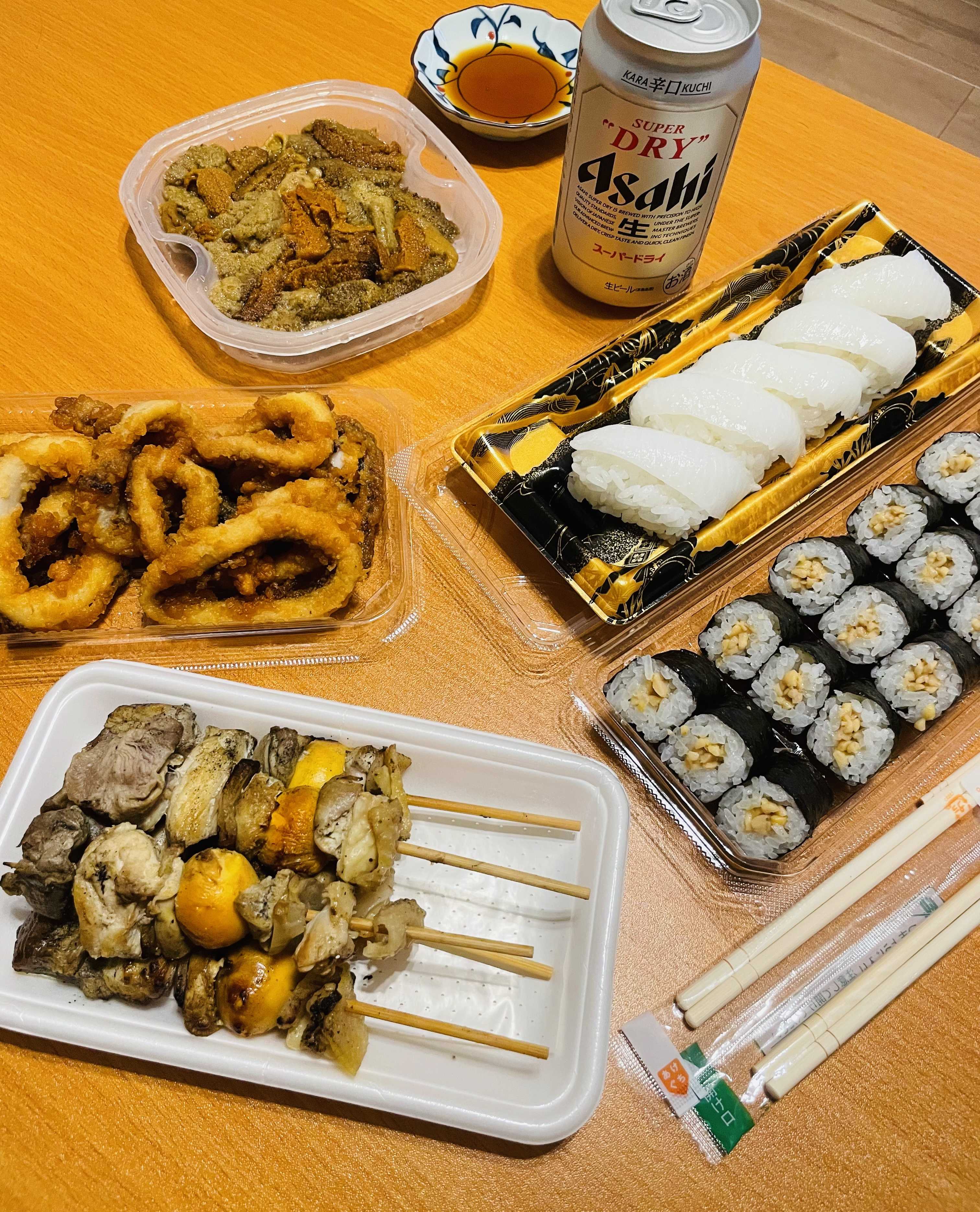 スーパーのお惣菜で晩酌(^^)/息子が納豆巻きでわたしがエンガワ握りだったのに・・・エンガワ3貫奪われたぁぁぁぁ大好きな美唄焼き鳥ですがなんだか最近ときめきがないです大好きだった食べ物がいつの間にかそんなに好きじゃなくなるこうやって好きな物・食べたい物が年々減っていくのだろうかー職場のエライ奴はいつも「食いたいものがない」と言う塩水ウニだけは死ぬまで好きな気がする!高くてたまにしか買えないもんな~今回は20%オフだった(^^)/息子が案外ホタテが好きだと知り炊き込みご飯の素を買ってみたお刺身は食べないけどバター焼きは大好きみたいよーまだ凍ってますが・・・そのままの貝柱が入ってる炊き込みご飯の素って珍しいと思いますー!!!これホタテ貝柱入り 炊き込みご飯の素 300g 2合用いつもホタテも買ってるのでついでに買ってみたら大正解!!最高に美味しかった(^^)/わたしはおかわり息子には「ホタテだけを食べたいのさ」と言われる良かれと思っていろいろ挑戦するが9割はずす・・・子供の舌は難しい